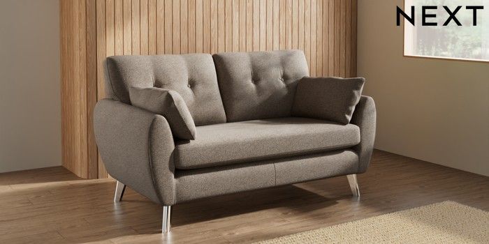 7.3.1 Buy Wilson Buttoned Back 2 Seater Sofa Chunky Weave Dark Natural Metal Tapered - Chrome from the Seasons online shop Click here to use our website with more accessibility support, for example screen readers