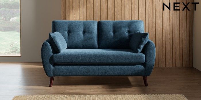 7.3.1 Buy Wilson Buttoned Back 2 Seater Sofa Cotswold Chenille Dark Blue Retro Tapered - Dark Brown from the Seasons online shop Click here to use our website with more accessibility support, for example screen readers