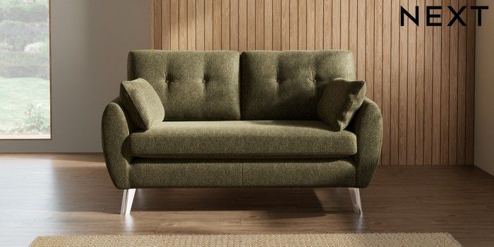 7.3.1 Buy Wilson Buttoned Back 2 Seater Sofa Cotswold Chenille Dark Green Metal Tapered - Chrome from the Seasons online shop Click here to use our website with more accessibility support, for example screen readers