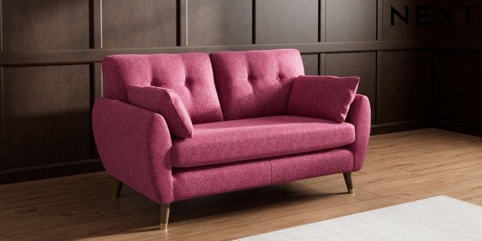 7.3.1 Buy Wilson Buttoned Back 2 Seater Sofa Cotswold Chenille Dark Raspberry Pink Low Retro Tapered Metal Cap - Mid from the Seasons online shop Click here to use our website with more accessibility support, for example screen readers