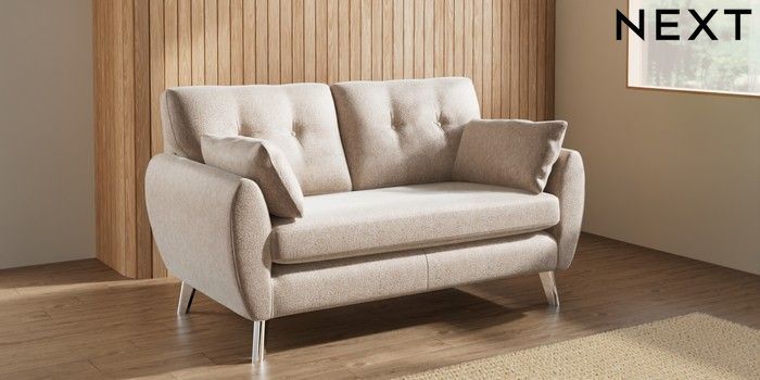 7.3.1 Buy Wilson Buttoned Back 2 Seater Sofa Cotswold Chenille Light Natural Metal Tapered - Chrome from the Seasons online shop Click here to use our website with more accessibility support, for example screen readers