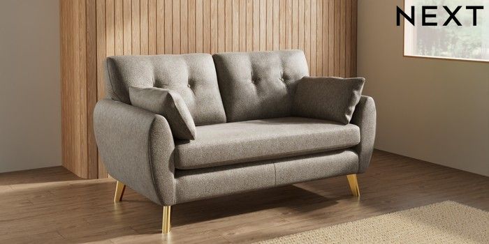 7.3.1 Buy Wilson Buttoned Back 2 Seater Sofa Cotswold Chenille Mid Mink Brown Metal Tapered - Gold from the Seasons online shop Click here to use our website with more accessibility support, for example screen readers