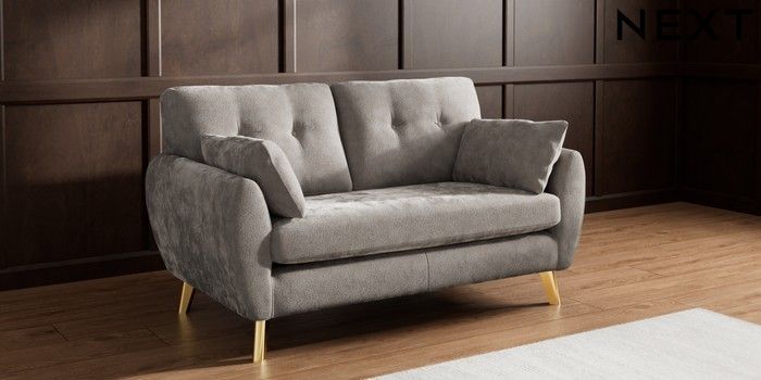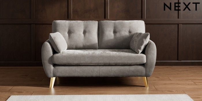 7.3.1 Buy Wilson Buttoned Back 2 Seater Sofa Distressed Velour French Grey Metal Tapered - Gold from the Seasons online shop Click here to use our website with more accessibility support, for example screen readers