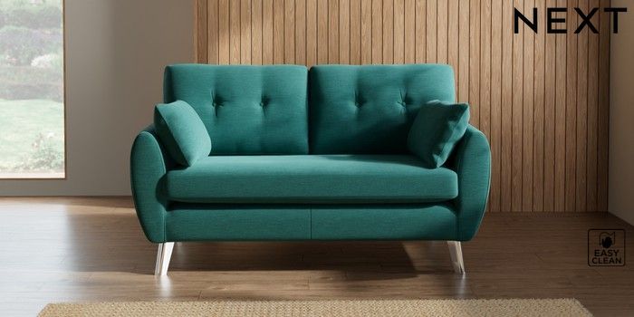 7.3.1 Buy Wilson Buttoned Back 2 Seater Sofa Fine Chenille Easy Clean Dark Juniper Green Metal Tapered - Chrome from the Seasons online shop Click here to use our website with more accessibility support, for example screen readers