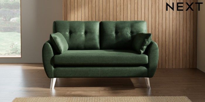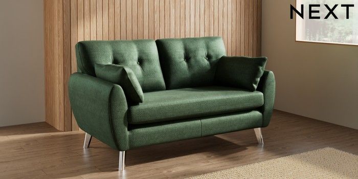 7.3.1 Buy Wilson Buttoned Back 2 Seater Sofa Luxe Chenille Dark Green Metal Tapered - Chrome from the Seasons online shop Click here to use our website with more accessibility support, for example screen readers