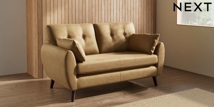 7.3.1 Buy Wilson Buttoned Back 2 Seater Sofa Luxe Chenille Honey Yellow Retro Tapered - Dark Brown from the Seasons online shop Click here to use our website with more accessibility support, for example screen readers