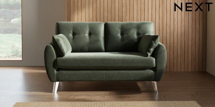 7.3.1 Buy Wilson Buttoned Back 2 Seater Sofa Luxe Chenille Mid Green Metal Tapered - Chrome from the Seasons online shop Click here to use our website with more accessibility support, for example screen readers