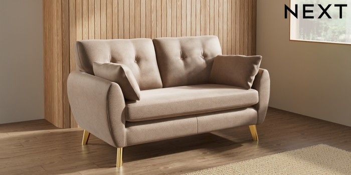 7.3.1 Buy Wilson Buttoned Back 2 Seater Sofa Luxe Chenille Mid Natural Metal Tapered - Gold from the Seasons online shop Click here to use our website with more accessibility support, for example screen readers