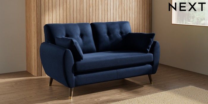 7.3.1 Buy Wilson Buttoned Back 2 Seater Sofa Luxe Chenille Navy Blue Low Retro Tapered Metal Cap - Mid from the Seasons online shop Click here to use our website with more accessibility support, for example screen readers