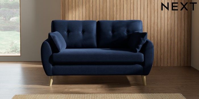7.2.10 Buy Wilson Buttoned Back 2 Seater Sofa Luxe Chenille Navy Blue Retro Tapered - Light from the Seasons online shop Click here to use our website with more accessibility support, for example screen readers