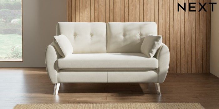7.3.1 Buy Wilson Buttoned Back 2 Seater Sofa Luxe Chenille Oyster Metal Tapered - Chrome from the Seasons online shop Click here to use our website with more accessibility support, for example screen readers