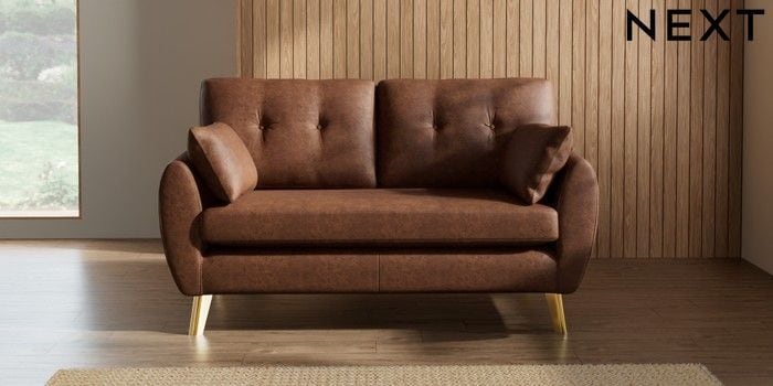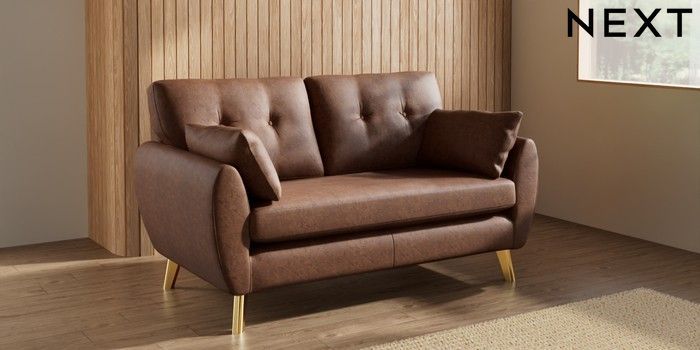 7.3.1 Buy Wilson Buttoned Back 2 Seater Sofa Monza Faux Leather Easy Clean Chestnut Brown Metal Tapered - Gold from the Seasons online shop