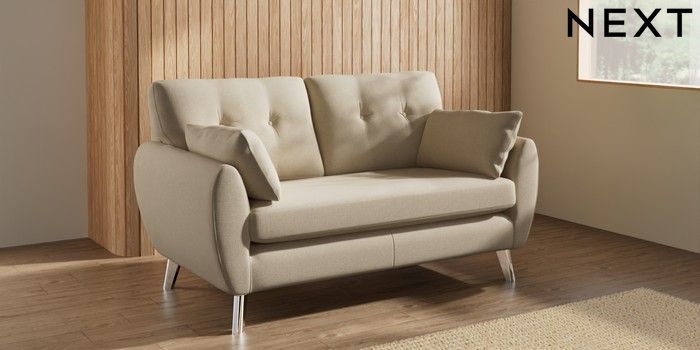 7.3.1 Buy Wilson Buttoned Back 2 Seater Sofa Natural Mix Light Natural Metal Tapered - Chrome from the Seasons online shop Click here to use our website with more accessibility support, for example screen readers