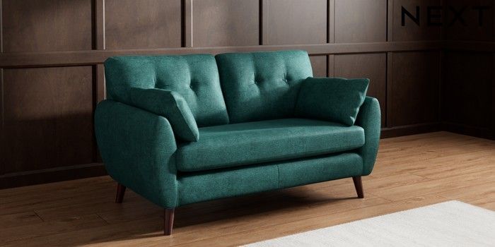 7.3.1 Buy Wilson Buttoned Back 2 Seater Sofa Plush Chenille Dark Teal Green Retro Tapered - Dark Brown from the Seasons online shop Click here to use our website with more accessibility support, for example screen readers