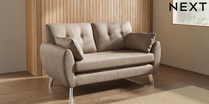 7.3.1 Buy Wilson Buttoned Back 2 Seater Sofa Plush Chenille Mid Natural Metal Tapered - Chrome from the Seasons online shop Click here to use our website with more accessibility support, for example screen readers