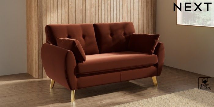 7.3.1 Buy Wilson Buttoned Back 2 Seater Sofa Plush Velvet Easy Clean Ginger Orange Metal Tapered - Gold from the Seasons online shop Click here to use our website with more accessibility support, for example screen readers