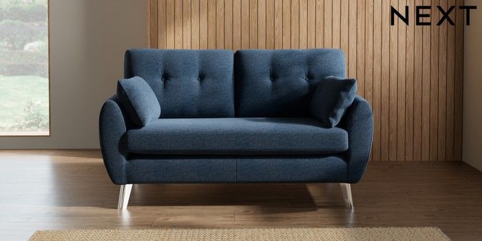 7.3.1 Buy Wilson Buttoned Back 2 Seater Sofa Ripple Chenille Dark Blue Metal Tapered - Chrome from the Seasons online shop Click here to use our website with more accessibility support, for example screen readers