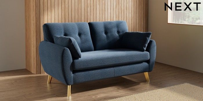 7.3.1 Buy Wilson Buttoned Back 2 Seater Sofa Ripple Chenille Dark Blue Metal Tapered - Gold from the Seasons online shop Click here to use our website with more accessibility support, for example screen readers