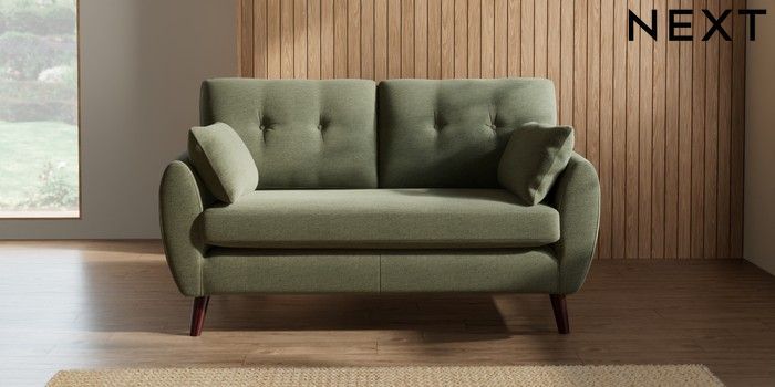 7.3.1 Buy Wilson Buttoned Back 2 Seater Sofa Ripple Chenille Mid Moss Green Retro Tapered - Dark Brown from the Seasons online shop Click here to use our website with more accessibility support, for example screen readers
