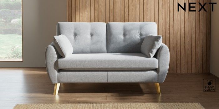 7.3.1 Buy Wilson Buttoned Back 2 Seater Sofa Tweedy Blend Easy Clean Light Silver Grey Metal Tapered - Gold from the Seasons online shop Click here to use our website with more accessibility support, for example screen readers
