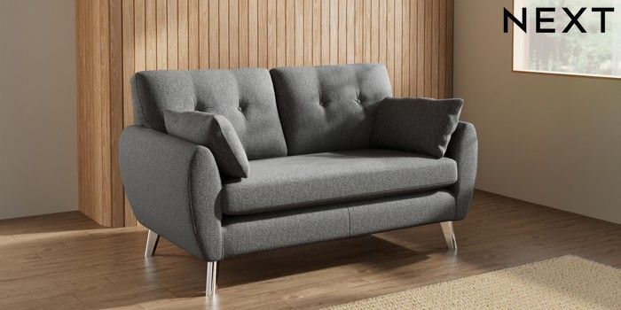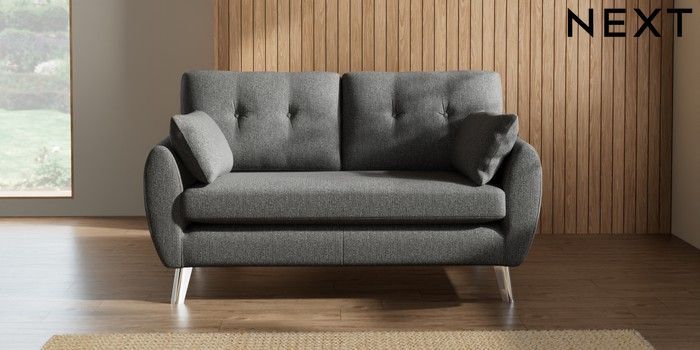 7.3.1 Buy Wilson Buttoned Back 2 Seater Sofa Tweedy Chenille Dark Grey Metal Tapered - Chrome from the Seasons online shop Click here to use our website with more accessibility support, for example screen readers