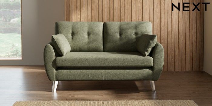 7.3.1 Buy Wilson Buttoned Back 2 Seater Sofa Tweedy Chenille Mid Moss Green Metal Tapered - Chrome from the Seasons online shop Click here to use our website with more accessibility support, for example screen readers