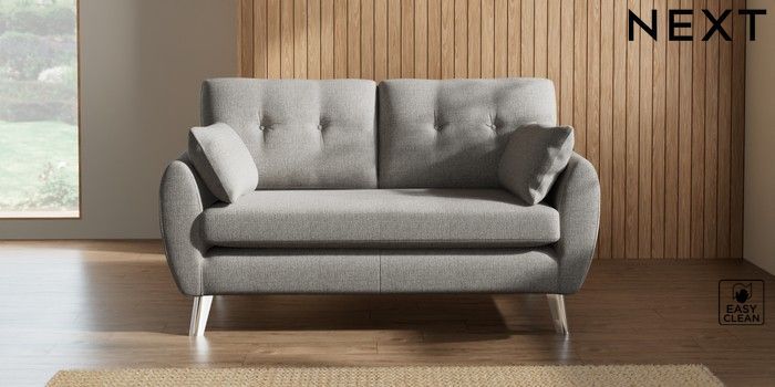 7.3.1 Buy Wilson Buttoned Back 2 Seater Sofa Woven Chenille Easy Clean Light Grey Metal Tapered - Chrome from the Seasons online shop Click here to use our website with more accessibility support, for example screen readers