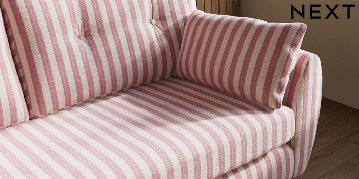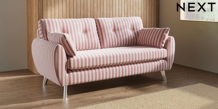 7.3.1 Buy Wilson Buttoned Back 3 Seater Small Sofa Bold Chenille Stripe Dark Pink Metal Tapered - Chrome from the Seasons online shop Click here to use our website with more accessibility support, for example screen readers