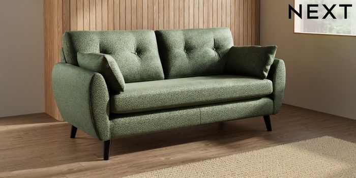 7.3.1 Buy Wilson Buttoned Back 3 Seater Small Sofa Boucle Chenille Dark Moss Green Retro Tapered - Dark from the Seasons online shop Click here to use our website with more accessibility support, for example screen readers