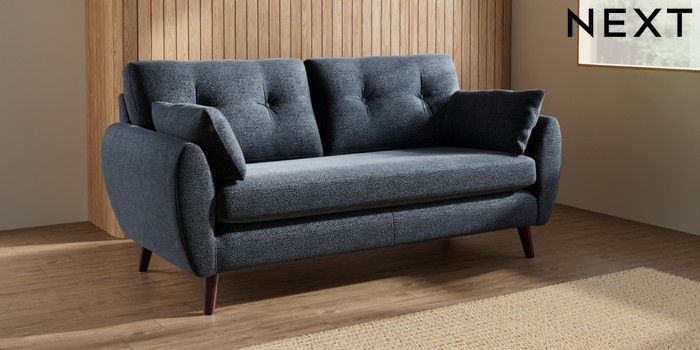 7.3.1 Buy Wilson Buttoned Back 3 Seater Small Sofa Boucle Chenille Dark Slate Blue Retro Tapered - Dark Brown from the Seasons online shop Click here to use our website with more accessibility support, for example screen readers
