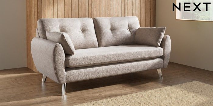 7.3.1 Buy Wilson Buttoned Back 3 Seater Small Sofa Boucle Chenille Light Natural Metal Tapered - Chrome from the Seasons online shop Click here to use our website with more accessibility support, for example screen readers