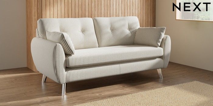 7.3.1 Buy Wilson Buttoned Back 3 Seater Small Sofa Chenille Stripe Moss Green Metal Tapered - Chrome from the Seasons online shop Click here to use our website with more accessibility support, for example screen readers