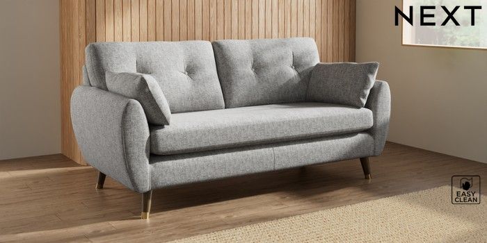7.3.1 Buy Wilson Buttoned Back 3 Seater Small Sofa Chunky Boucle Easy Clean Light Grey Low Retro Tapered Metal Cap - Mid from the Seasons online shop Click here to use our website with more accessibility support, for example screen readers