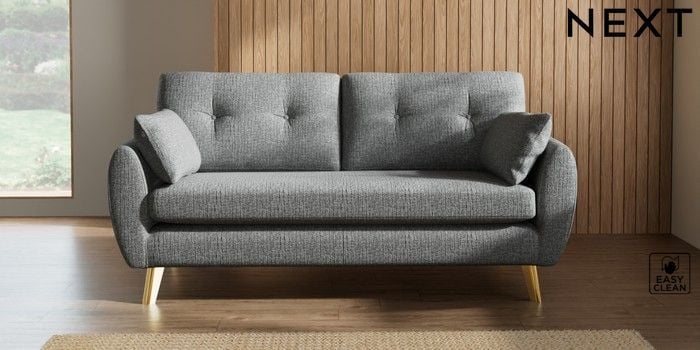 7.3.1 Buy Wilson Buttoned Back 3 Seater Small Sofa Chunky Boucle Easy Clean Mid Grey Metal Tapered - Gold from the Seasons online shop Click here to use our website with more accessibility support, for example screen readers