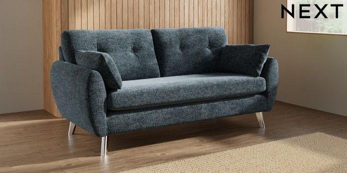 7.3.1 Buy Wilson Buttoned Back 3 Seater Small Sofa Chunky Chenille Dark Navy Blue Metal Tapered - Chrome from the Seasons online shop Click here to use our website with more accessibility support, for example screen readers