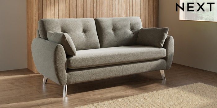 7.3.1 Buy Wilson Buttoned Back 3 Seater Small Sofa Chunky Marl Light Olive Green Metal Tapered - Chrome from the Seasons online shop Click here to use our website with more accessibility support, for example screen readers