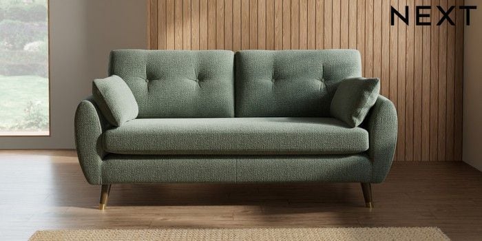 7.3.1 Buy Wilson Buttoned Back 3 Seater Small Sofa Chunky Texture Mid Forest Green Low Retro Tapered Metal Cap - Mid from the Seasons online shop Click here to use our website with more accessibility support, for example screen readers