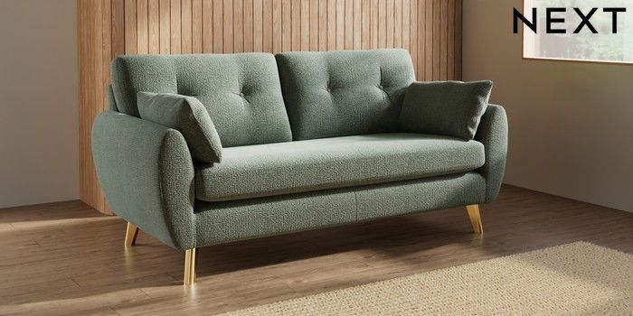 7.3.1 Buy Wilson Buttoned Back 3 Seater Small Sofa Chunky Texture Mid Forest Green Metal Tapered - Gold from the Seasons online shop Click here to use our website with more accessibility support, for example screen readers