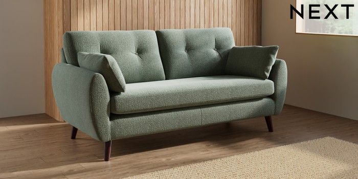 7.3.1 Buy Wilson Buttoned Back 3 Seater Small Sofa Chunky Texture Mid Forest Green Retro Tapered - Dark Brown from the Seasons online shop Click here to use our website with more accessibility support, for example screen readers