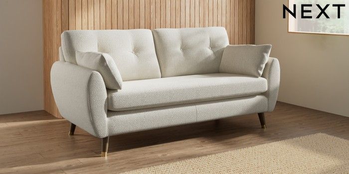 7.3.1 Buy Wilson Buttoned Back 3 Seater Small Sofa Chunky Texture Oyster Low Retro Tapered Metal Cap - Mid from the Seasons online shop Click here to use our website with more accessibility support, for example screen readers
