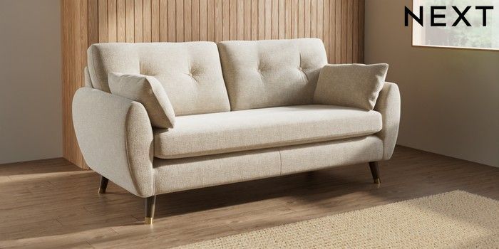 7.3.1 Buy Wilson Buttoned Back 3 Seater Small Sofa Chunky Weave Cream Low Retro Tapered Metal Cap - Mid from the Seasons online shop Click here to use our website with more accessibility support, for example screen readers