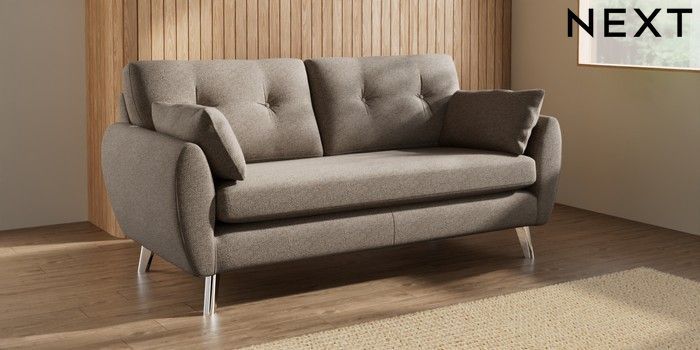 7.3.1 Buy Wilson Buttoned Back 3 Seater Small Sofa Chunky Weave Dark Natural Metal Tapered - Chrome from the Seasons online shop Click here to use our website with more accessibility support, for example screen readers