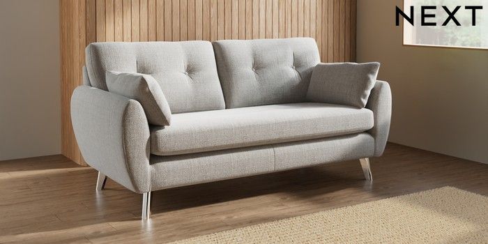 7.3.1 Buy Wilson Buttoned Back 3 Seater Small Sofa Chunky Weave Dove Grey Metal Tapered - Chrome from the Seasons online shop Click here to use our website with more accessibility support, for example screen readers