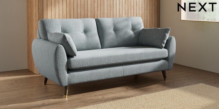7.3.1 Buy Wilson Buttoned Back 3 Seater Small Sofa Chunky Weave Mid Blue Low Retro Tapered Metal Cap - Mid from the Seasons online shop Click here to use our website with more accessibility support, for example screen readers
