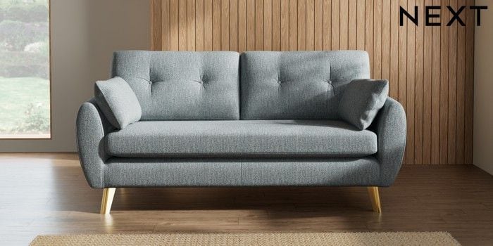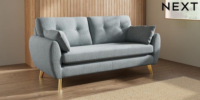 7.3.1 Buy Wilson Buttoned Back 3 Seater Small Sofa Chunky Weave Mid Blue Metal Tapered - Gold from the Seasons online shop Click here to use our website with more accessibility support, for example screen readers