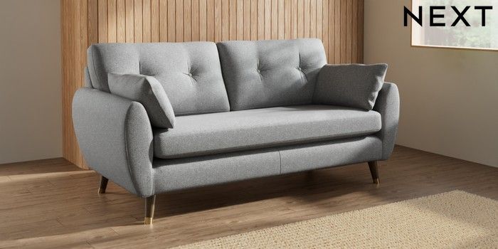 7.3.1 Buy Wilson Buttoned Back 3 Seater Small Sofa Chunky Weave Mid Grey Low Retro Tapered Metal Cap - Mid from the Seasons online shop Click here to use our website with more accessibility support, for example screen readers