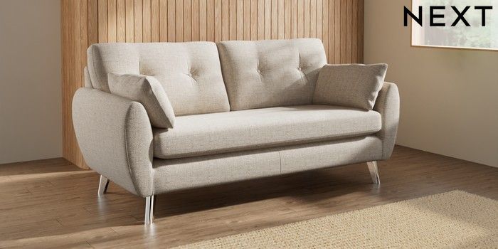 7.3.1 Buy Wilson Buttoned Back 3 Seater Small Sofa Chunky Weave Mid Natural Metal Tapered - Chrome from the Seasons online shop Click here to use our website with more accessibility support, for example screen readers