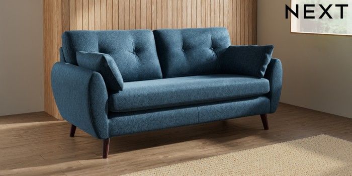 7.3.1 Buy Wilson Buttoned Back 3 Seater Small Sofa Cotswold Chenille Dark Blue Retro Tapered - Dark Brown from the Seasons online shop Click here to use our website with more accessibility support, for example screen readers