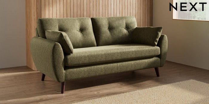 7.3.1 Buy Wilson Buttoned Back 3 Seater Small Sofa Cotswold Chenille Dark Green Retro Tapered - Dark Brown from the Seasons online shop Click here to use our website with more accessibility support, for example screen readers