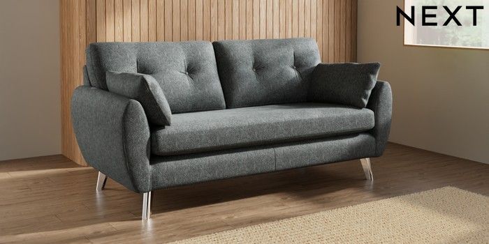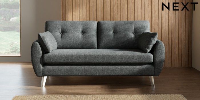 7.3.1 Buy Wilson Buttoned Back 3 Seater Small Sofa Cotswold Chenille Dark Grey Metal Tapered - Chrome from the Seasons online shop Click here to use our website with more accessibility support, for example screen readers